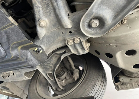 Der Fahrzeughalter zeigte auf die Unterseite des Hilfsrahmens und erklärte, dies seien die Folgen eines Aufpralls. Er sei verformt und die beschädigte Lackierung verrostet. Bei einem erneuten Aufprall auf das Getriebe werde das Getriebe aus Aluminiumlegierung mit Sicherheit beschädigt.
