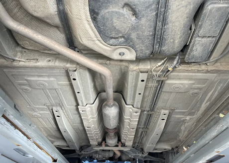 Betrachten wir zunächst das Chassis, wie im folgenden Bild dargestellt. Die Unterseite des Originalmotors und des Getriebes wies keine Schutzplatten auf, und die flexible Verbindung des Auspuffrohrs zeigte Beschädigungen durch Kratzer auf dem Boden.