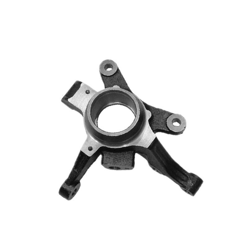 Der Achsschenkel dient als zentraler Verbindungspunkt im Vorderachssystem und ermöglicht das Drehen der Räder bei gleichzeitiger korrekter Ausrichtung zu den Fahrwerkskomponenten. Er ist verbunden mit: