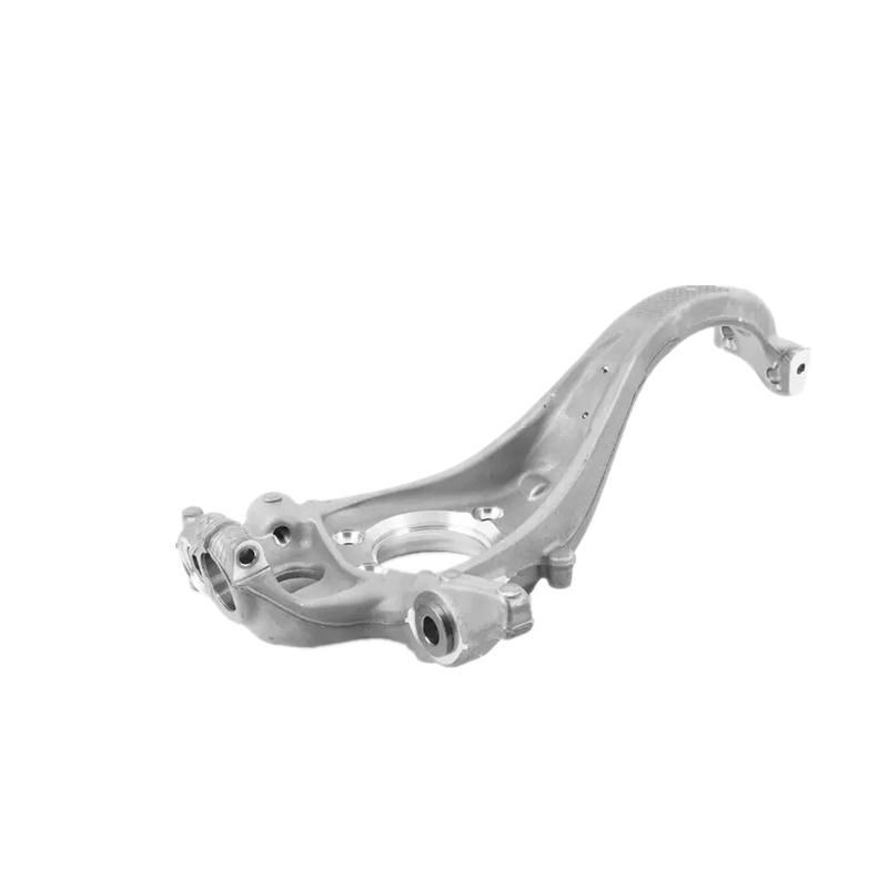 Die vorderen Achsschenkel mit den Teilenummern 95B407253F (links) und 95B407254F (rechts) sind OEM-Komponenten für die Porsche Macan-Modelle (95B). Diese Achsschenkel sind wichtige Teile der Vorderradaufhängung, da sie die Radnabe mit der Aufhängung verbinden und die Lenkbewegung ermöglichen.