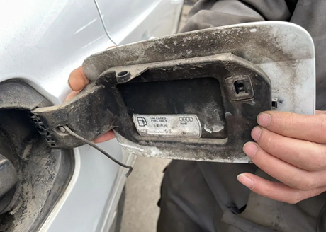 Als der Audi Q3 im Geschäft ankam, sagte der Besitzer, dass er den Tankdeckel partout nicht öffnen könne, deshalb sei er hierher gekommen, um zu sehen, was er tun solle.