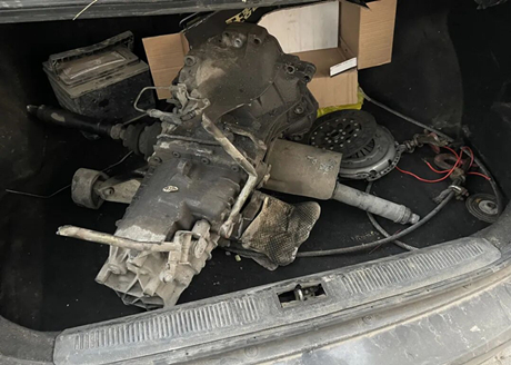 Mit Zustimmung des Fahrzeughalters fand der Mechaniker, wie im Bild unten zu sehen, schnell das komplette Getriebe aus der Demontagefabrik, zusammen mit zwei beschädigten Antriebswellen und sogar Kupplungsdruckplatten und -scheiben. Der Mechaniker erklärte, dass die Druckplatten und Scheiben kaum benutzt und offensichtlich vor der Verschrottung repariert worden waren.